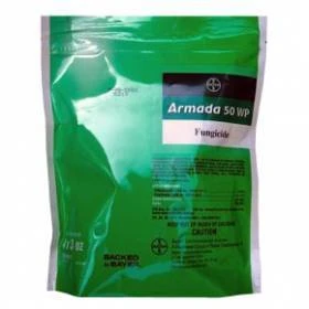 Armada 50 WDG, which contains the active ingredients Triadimefon and Trifloxystrobin, provides a broad spectrum of activity against most turf and ornamental diseases of concern in northern and southern climates. With its dual mode of action, Armada combines the power of systemic and local penetrant fungicides for twice the disease-fighting power. It controls turf diseases such as brown patch and dollar spot for up to 28 days as well as the control of summer patch and more. When used in ornamental landscapes this powerhouse of a fungicide controls diseases such as black spot, leaf spot, rust and scab.