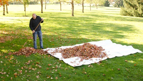 This heavy-duty lawn tarp holds up to the toughest cleanup jobs.