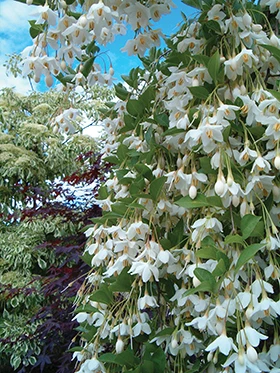 Plant Haven Styrax’ Fragrant Fountain’ is a richly fragrant new weeping Styrax japonica. 'Fragrant Fountain’ reaches only 6 feet high and 5 feet wide, and fragrant white flowers cover the tight form from early spring through summer. The multi-season appeal and quick growth of this compact shrub make it appealing for landscapes of all sizes.