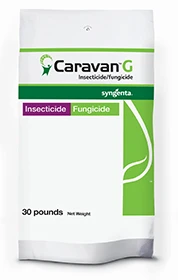 Caravan G controls a wide range of insect and disease pests including white grubs, chinch bugs, ants, craneflies, billbugs, Japanese beetles, sod webworms, brown patch, leaf spot, necrotic ring spot and red thread. This ready-to-use product comes in a 30-pound bag with an easy-to-close zipper seal so you use only what you need. While timing and geographies will vary, one application of Caravan G made between May 15 through July 15 can yield season-long grub control and up to one month preventive brown patch control. Approximately, 2.0-2.8 lbs of Caravan G are needed per 1,000 square feet. Spreader settings are located on the bag.