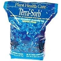 Terra-sorb hydrogel is an efficient, super-absorbent co-polym er that absorbs 200 times its weight in water, then releases it slowly to reduce watering by 50 percent or more. It's a process that's repeated when water is reintroduced over a period of 3-4 years.