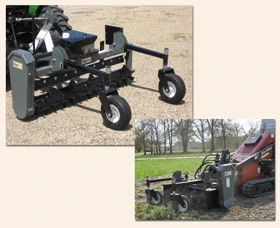 • These power landscape rakes remove debris or sod to prepare seedbed surfaces to create a new lawn, renovate an existing lawn or pulverize and set grade on new construction sites.