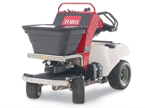 BLOOMINGTON, Minn. – The Toro Company has added a new stand-on spreader/sprayer to its turf renovation product line. This machine makes spreading and spraying turf properties easier with Lean to Steer technology, intuitive controls and large capacity hopper and spray tank in a compact design.
