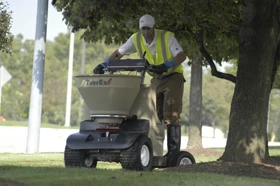 The large-capacity hopper accommodates 150 pounds, or 3 cubic feet, of material, which can be spread up to 11 feet wide. Additionally, the balanced tank system holds 17 gallons of liquid and contains just one fill port for quick, convenient refilling. The sprayer is powered by a 2-gpm pump, and the low-pressure nozzles offer multiple spray patterns to apply liquid up to 11 feet wide. A spot sprayer is also provided for weed-spraying applications.