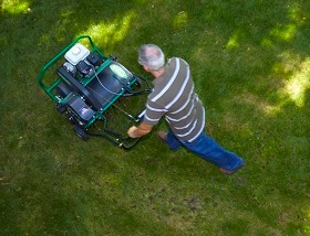 The New Lawnaire V with Easy Steer Technology combines all the features as Ryan’s current Lawnaire V core aerator with a new tine assembly that enables the unit to turn easily while in the aeration process – without removing the tines from the ground. Each tine wheel assembly has a one-way clutch bearing. Aeration speed of up to 45,000 square feet per hour and a 26.5 inch aeration swath. The drum-style, self-propelled aerator features steel axles mounted on construction grade sealed ball bearings and a single nickel-plated drive chain (tine and drum) for durability.