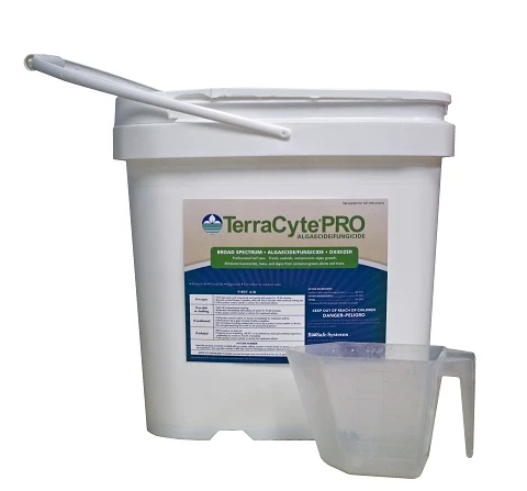 TerraCytePRO Algaecide/Fungicide is a revolutionary product designed to completely eradicate and prevent moss, algae, fungi, and their spores. TerraCytePRO Algaecide/Fungicide is an enhanced wettable powder formulated with an activated peroxygen chemistry that releases oxygen as it biodegrades.