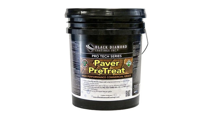 Paver PreTreat is designed as a basecoat for the Black Diamond Coatings’ PRO TECH SERIES SG+, LG+ andNG+ sealers. It is designed for use by professional contractors. Paver PreTreat is chemically formulated with advanced nanotechnology to be applied as a base coat for porous concrete pavers when a color-enhancing sealer will be used. The use of Paver PreTreat as a base coat eliminates the need for multiple coats of the SG+, LG+ and the NG+ color-enhancing sealers on porous concrete pavers.