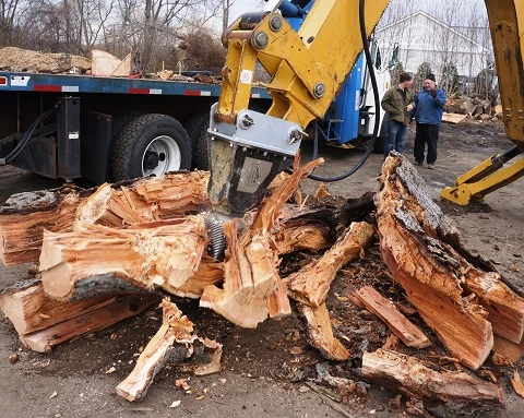The Black Splitter S2X 800 is a hydraulic wood splitting attachment that enables an operator to handle and split large timber without leaving the cab of a construction machine.