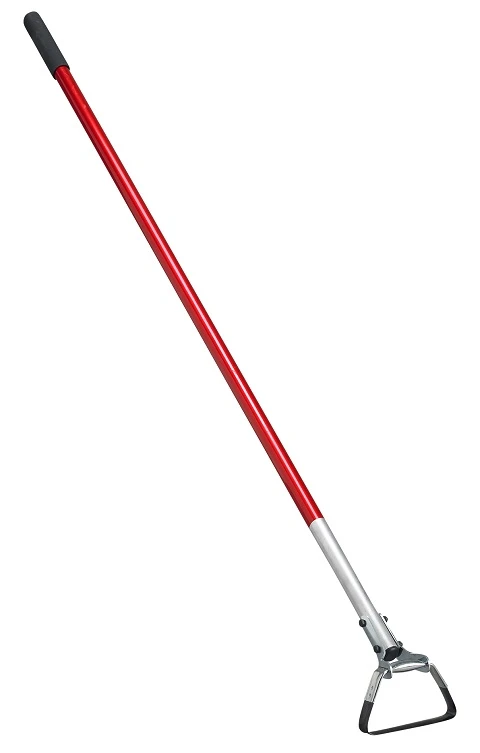 - Hoe automatically angles slightly downward on both forward and back stroke to slice weeds just below surface
