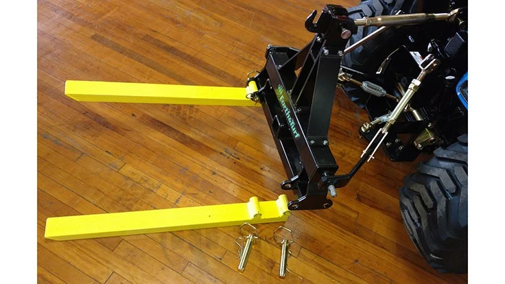 These forks were designed to be easy to install and to remove, and the tines are attached by lynch pins which are both completely removable and can pivot upward to save space during storage.