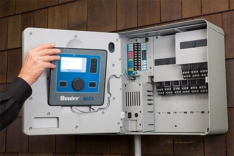 SAN MARCOS, Calif. – At its core, the ACC2 has a powerful transformer that allows it to safely run up to 14 valves simultaneously, bringing maximum efficiency to large watering schedules. The ACC2 can be configured for any commercial project, from 12 to 54 stations, with up to six flow meter inputs, and up to six pump/master valve outputs. Its large, full-color backlit display and unique reversible facepack make program setup and diagnostics fast and efficient.