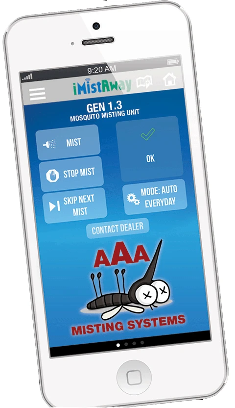 The solution also includes an app which a dealer can load onto its customer’s smartphone. The app can be customized with the dealer’s name and logo and will allow the customer to see their system’s status or use their smartphone to trigger or stop a mist. The app will also enable the customer to easily contact his MistAway dealer or refer a friend.
