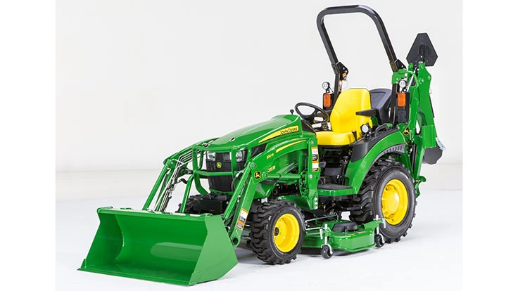 The redesigned 2025R compact utility tractor is designed to tackle a variety of jobs. The new design features a sloping hood with standard work lights.