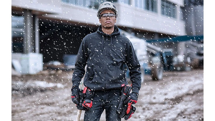 The No Days Off Hooded Sweatshirt combines wind and water resistance with a comfortable fleece lining to provide all season versatility. The addition of a fitted hood designed to be worn under a hard hat, extended collar to protect the neck, and interior storm flap provide enhanced protection from the elements. Durable polyester body material and double layer reinforcement of pocket edges and forearms extend product life when used in demanding job site environments. Built for all conditions, the No Days Off Hooded Sweatshirt fights the rain when worn as an outer shell, and provides wind protection and warmth when used as a versatile layer in extreme cold.