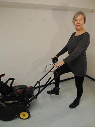 The 'Buddy' allows the user to use their foot to activate the pull cord instead of the arm. This product is made from parts manufactured mainly in Canada with one part manufactured in the US. The device also works with a single stage snow blower.