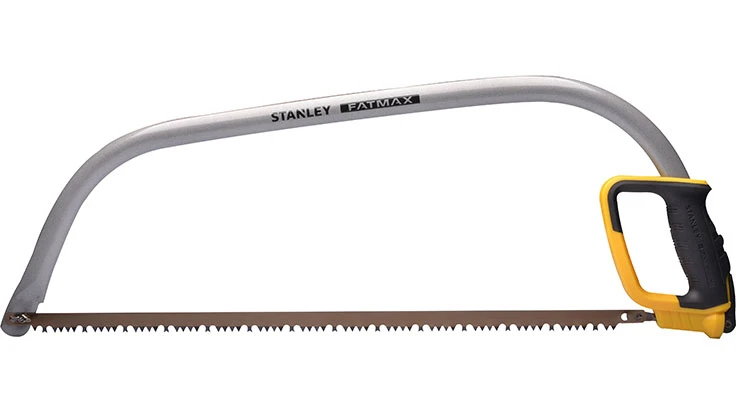 The FATMAX Bow Saw features a combative tooth pattern and lightweight body with a comfort molded grip and durable hand guard. The saw also includes a heat treated removable steel blade for push-pull cutting.