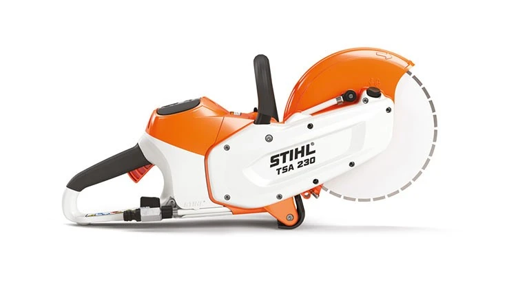 The TSA 230 STIHL Cutquik is a cut-off machine powered by 36-volt Lithium-Ion battery technology.