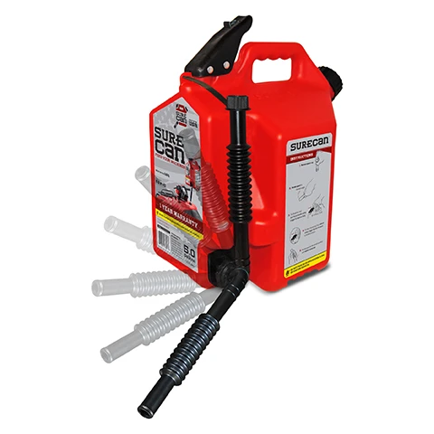 NORTH OGDEN, Utah – SureCan offers the 2.2 gallon and 5.0 gallon gasoline fuel cans which is ideal for everyone who re-fuels their lawn and garden machines, ATV’s, Generators or any other machines that require gasoline to run. According to the EPA, each year 17,000,000 gallons of gasoline are spilled while using gas cans. The 2.2 and 5.0 gallon SureCans are designed with its rotating nozzle and thumb release trigger to fix this problem by allowing the user to control the flow of fuel by depressing the thumb trigger release while at the same time being able to see into their machines fuel tank preventing over fill and spills. Other features of the 2.2 and 5.0 Gallon fuel cans include a trigger safety lock, self-ventilating system, comfortable hand grip, durable design and two child-proof caps.