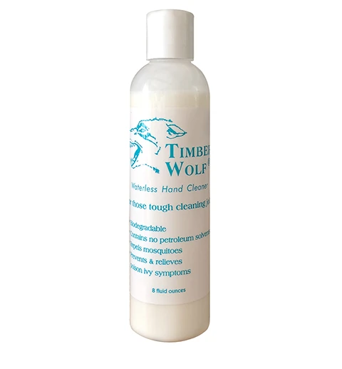 Timber Wolf waterless hand cleaner will provide your personnel with a product that cleans and moisturizes the skin, repels mosquitoes and prevents and relieves the symptoms of poison ivy, oak and sumac.