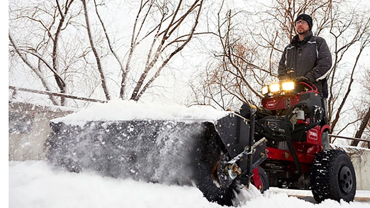 Toro's power broom attachment is desgined for use with the GrandStand Multi-Force stand-on mower.