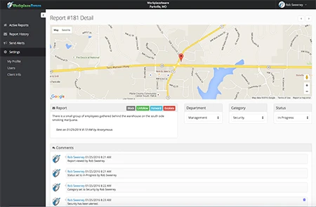 All reports submitted through the employer-branded WorkplaceAware mobile app are geo-tagged based on the location of the picture taken. In the moment, when creating a report, employees may not remember to include location details in the text they submit with photos. The WorkplaceAware Report Management System eliminates the extra step of a manager or business owner trying to contact the employee for more information regarding exactly where an incident occurred. Vital minutes of response time are saved through this automated process within the app.