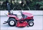 Standard features include tilt hood, flat operator deck and seat with retractable seat belts