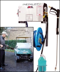 2.2 gallon-per-minute pump conserves water Powered by a 2-horsepower Baldor electric motor Includes guaranteed nationwide service Options include wall-mounted and removable wall-mounted models Pressure Washers