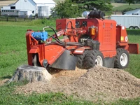 Four-wheel-drive stump grinder features a 76-inch boom swing arc