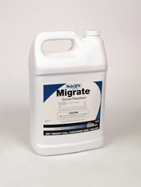 - Migrate Goose Repellent is a biodegradable, non-toxic concentrate that is mixed with water and applied to the grass