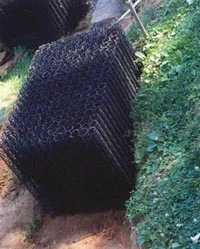 Strong, rigid, yet open blocks can be filled with soil, sand and aggregate