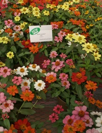 The Zinnia marylandica Zahara series from PanAmerican Seed comes in four colors (Coral Rose, Scarlet, White and Yellow) and a Mixture.