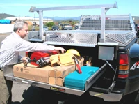 Optional GorillaSlide cargo tray installs to the truck bed and holds as many as 2,000 pounds