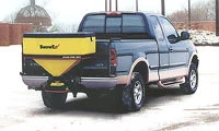 Mount requires no drill holds in the truck bed and allows spreader to swing away