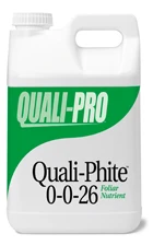 Quali-phite 0-0-26 from Quali-Pro is a highly soluble potassium phosphite foliar nutrient for turf, nursery crops, and commercial landscaping. It is stabilized with a unique, patented formulation of organic acids. It helps improve plant health, quality and longevity and increase disease-, drought- and stress-resistance. Quali-phite may be applied through all types of grounds spraying equipment, irrigation systems and as a tank mix partner with other foliar fungicide and/or insecticide applications. It comes in 2.5 gallon jugs.
