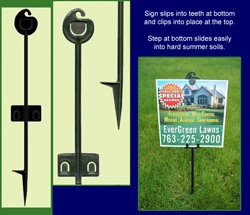 The Super Stake sign holder from RND Signs is designed to hold the sign securely in place and push into hard summer soils. These functional plastic stakes are easy to use and are packaged for efficient storage in warehouses and trucks. The Sign slips into teeth at the bottom and clips into place at the top.