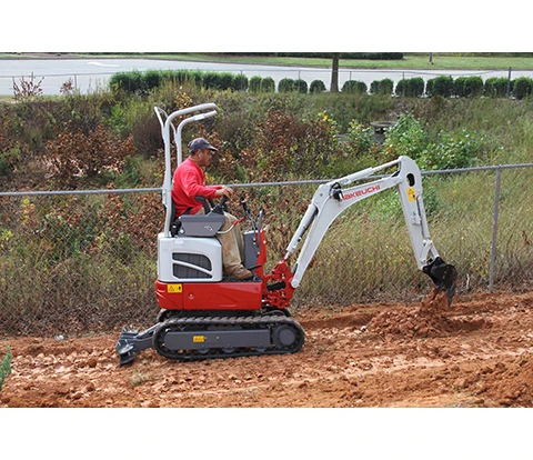 The Takeuchi TB210R has many new and exciting features that enhance performance, durability, and serviceability. One of the key features is the minimal tail swing design. It also features a retractable undercarriage, a backfill blade that can go from 40.2 inches wide down to 29.5 inches wide and a new foldable ROPS/TOPS canopy that can reduce the machine’s overall height.