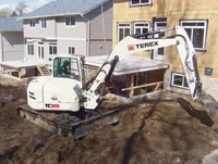 Weighs 27,563 pounds with a maximum dig depth of 15 feet 4 inches and a maximum reach of 27 feet 2 inches