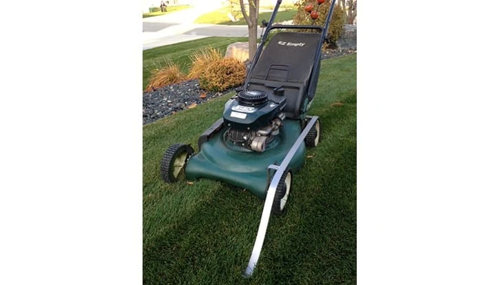 - This attachment is mounted opposite the discharge chute of the mower and does not interfere with the height adjustment mechanisms of the mower, nor does it affect the lawnmower’s performance in any way.