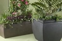 Metal finishes naturally age and weather Finishes include bronze, copper, iron and aluminum Available in round, square and rectangular shapes Come in a variety of sizes and designs Plant Containers