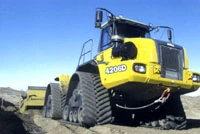 High-torque, track-driven tractor designed to pull scrapers over tough terrain
