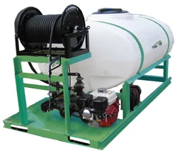 The Turbo Turf Compost Tea Sprayer comes standard with a Honda 5.5 HP recoil start engine and a manual hose reel. An electric rewind hose reel and Honda 5.5 H.P. “electric” start engine is available as an option. The electric start is recommended with the electric rewind hose reel as the electrical system will power the hose reel making it a self contained unit that does not need to use the electrical system of the transport vehicle. Without the electric start the reel would need to be hard wired to your truck.