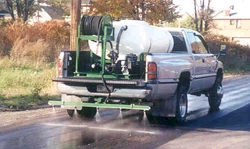 The ICS-300 Ice Control Sprayer from Turbo Technologies has a 300 gallon oval tank mounted on a skid frame with a 5.5 H.P. electric start Honda gas engine and a coated Ace centrifugal pump. As an option units can be equipped with a Banjo 2" x 2" self priming corrosion resistant poly pump with an output of 190 G.P.M. The Anti-icing sprayer is plumbed to be self filling from a storage tank requiring only a hose and not a separate pump.
