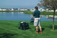 Dual braking action allows the aerator to turn without stopping and with the tines in the ground