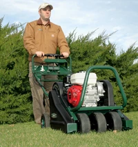 Features the DiffDrive system with dual-brake action to allow the machines to turn corners with the tines in the ground