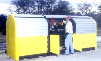 Outdoor drum storage units available in 8-, 12-, 16- and 20-drum models