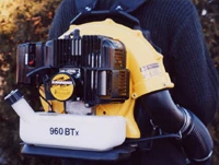 Powered by a 60-cc Kawasaki engine Air volume of 860 cfm at 225 mph Net weight is less than 22 pounds An ergonomic back plate with a quick-release waist strap keeps the blower comfortably against the back with no side sway movement Blowers