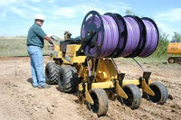 • Capable of laying three rows of tubing at a time, with depth adjustability from 2 to 12 inches in 1-inch increments and spacing width adjustability from 10 inches to 24 inches in 2-inch increments