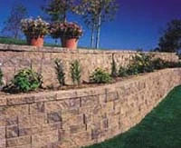 Capable of building random-pattern tall walls Walls can be of unlimited height Available in standard split-face or weathered textures Each wall panel comprises three different units in a random four-unit pattern Top-pinning design for strength Retaining Wall Systems