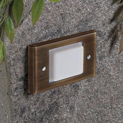 Recessed within the elements of steps or walls for low-level area lighting, this low voltage lens face step light fixture from Vista Professional Outdoor Lighting is constructed of a stamped and formed, copper-free, aluminum housing with ½” knockouts on the back and sides. A solid brass cover plate is fitted with UV-resistant weather stripping to ensure a superior weather-tight seal. A translucent, high-impact, polycarbonate lens safeguards the lamp and optics. The 2141-BSO is shipped with a standard 10W T3 lamp, unless otherwise specified.