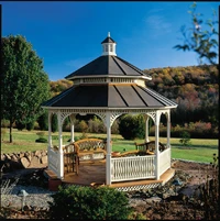 High-end Western Red Cedar products Line includes gazebos, garden houses, pavilions, tea houses and porch systems Gazebos and Pavilions can be combined in multiple layout styles Structures
